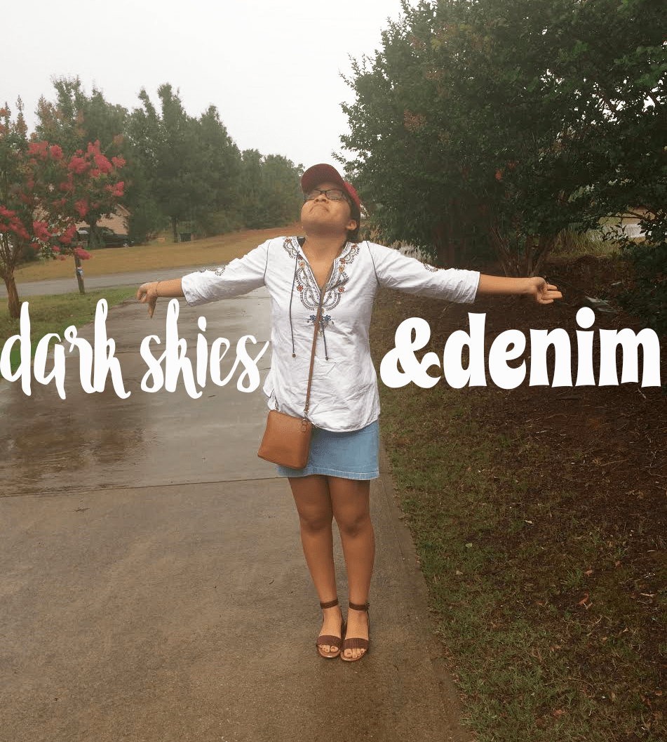 I love my denim skirt. It has shoe laces as a cincher for my waist and it’s the perfect fingertip length. I always tuck my top into high-waisted bottoms, but today I wanted to try something new. And whatever I eat, no one could even see my food baby bump through my tight skirt. It makes me look like I actually have a butt.